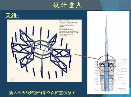 另外,由于廣州新電視塔處于飛機(jī)轉(zhuǎn)向區(qū),按照規(guī)定,該處飛機(jī)在航線所處位置周圍300米內(nèi)不能出現(xiàn)障礙物,新電視塔上方飛機(jī)飛行高度為海拔900米,因此,為確保飛機(jī)飛行安全,也對塔頂天線做了細(xì)部處理,現(xiàn)已從塔頂天線撤出10米,最終高度為600米。