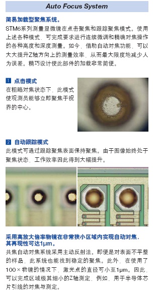 為了提高測量精度,減少人為誤差,奧林巴斯提供了激光自動聚焦和輔助聚焦兩款系統(tǒng)供客戶選擇.